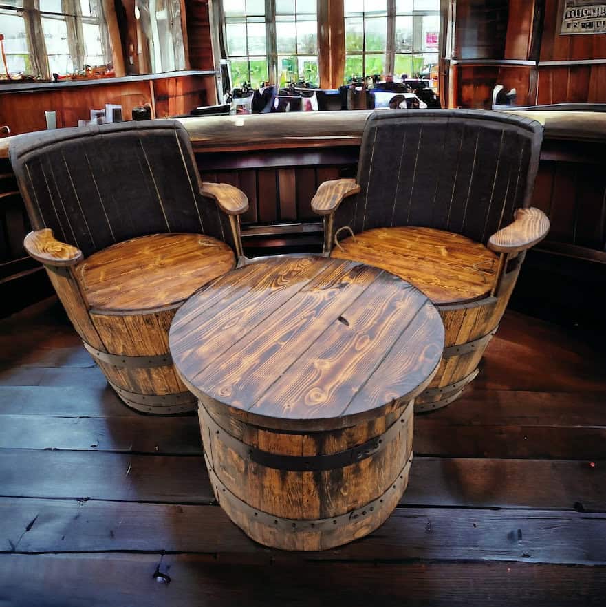 Material Magic: We’re all about eco-friendly vibes! Our furniture is refurbished from 100% Scottish Oak, carefully salvaged from retired whiskey barrels for a touch of vintage flair.